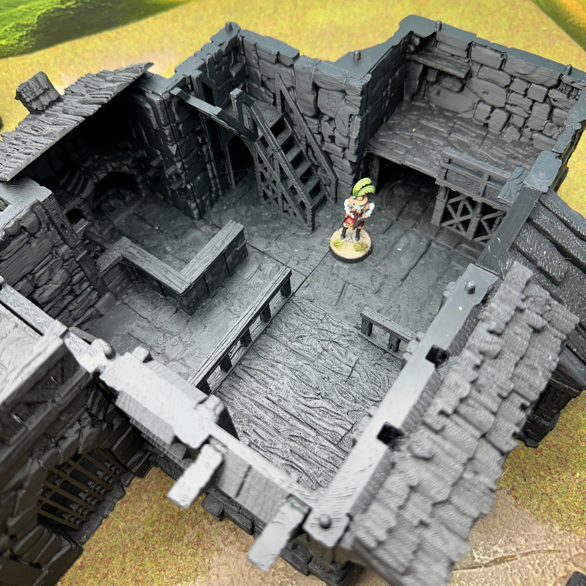 The Knights Inn stands as a formidable 3D-printed masterpiece for wargaming enthusiasts. Crafted from dark stone with steeply pitched roofs and a commanding tower, this intricately detailed structure features a winding staircase and arched windows, evoking the grandeur of a medieval stronghold. Perfect for epic battles or immersive role-playing, the Knights Inn brings a touch of chivalric splendor to any tabletop, inviting knights and adventurers to forge their legends within its walls.