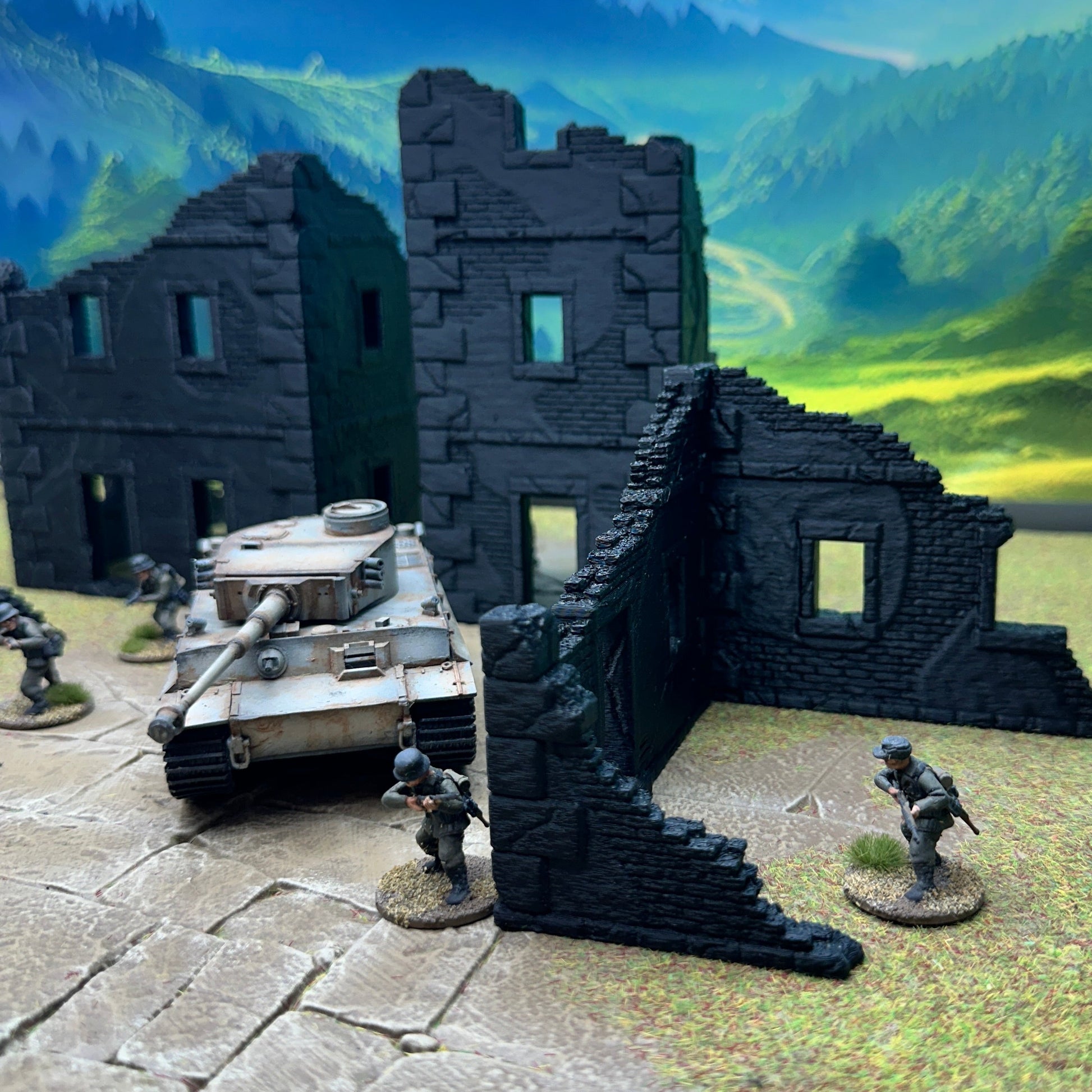 Gear up for intense WWII Bolt Action and Trench Crusade battles with our 3D-printed Ruined Village Terrain Set! This detailed collection features crumbling stone walls and shattered buildings, perfect for creating authentic war-torn landscapes. Ideal for strategic gameplay and immersive storytelling, transform your tabletop into a gritty battlefield today!
