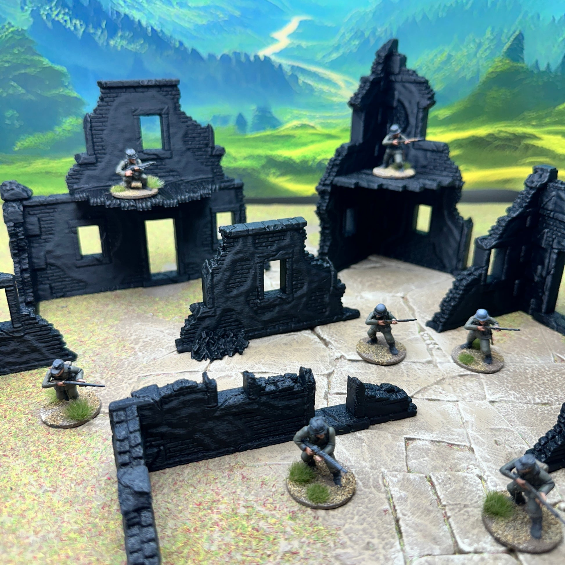 Gear up for intense WWII Bolt Action and Trench Crusade battles with our Ruined Normandy Village Terrain Set! This detailed collection features crumbling stone walls and shattered buildings, perfect for creating authentic war-torn landscapes. Ideal for strategic gameplay and immersive storytelling, transform your tabletop into a gritty battlefield today!